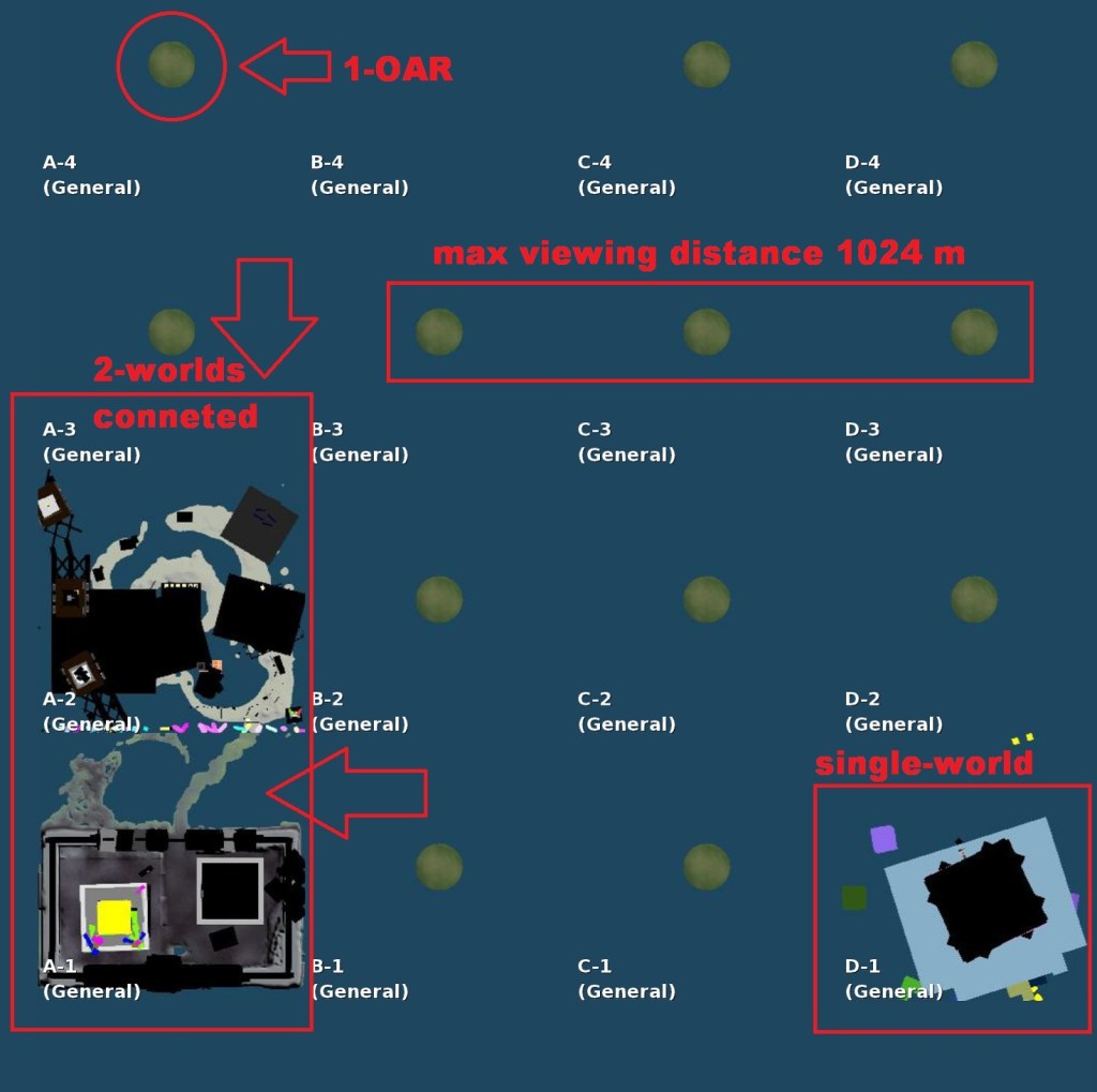 Up to 16 OAR regions — each the size of a full sim (512 × 512 meters) — are loaded in a single operation. Together, they form a temporary universe: an exhibition that lives for an hour or more, fully explorable and alive.
